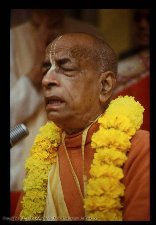 Melodious kirtan such as this by Her Grace Premanjali DD is a sure recipe for instant and enlivening happiness. Just see how happy she seems to be with a wonderful smile. Besides that, because of its spiritual nature, one never grows tired of it, as happens with material happiness neither does it sap one’s vital energy. Who would not accept to participate in such joyous occasions unless that person “is to be understood very much bewildered by the illusory energy of the Lord.”