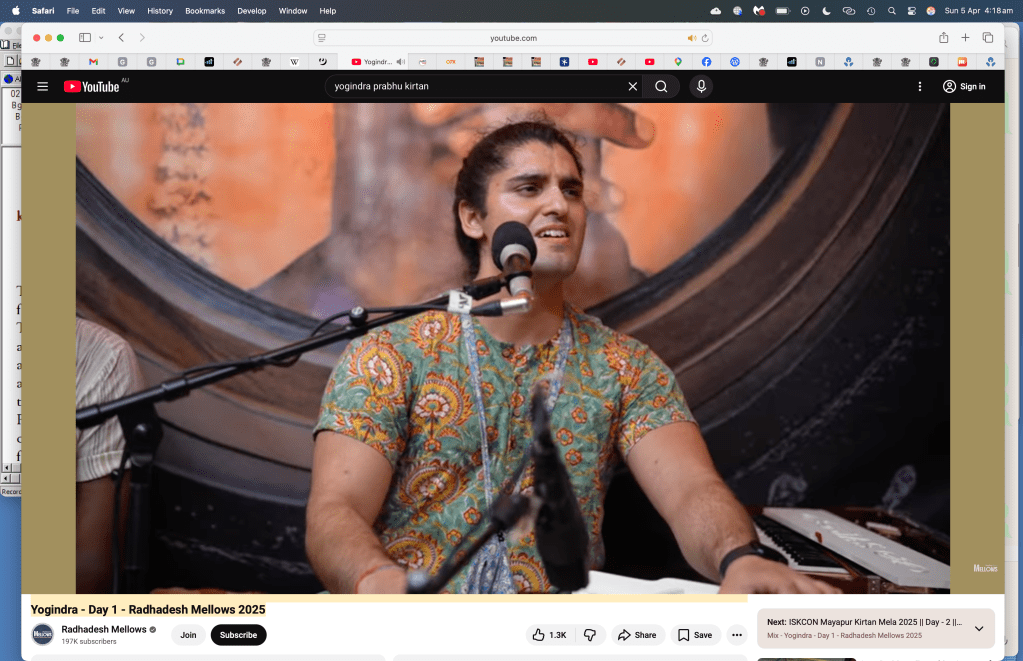 Sriman Yogindra Prabhu is a very exceptional kirtan leader. All glories and credits to him. (to be developed.)