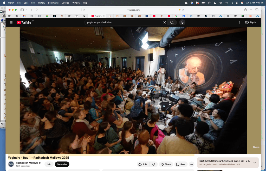 - Sriman Yogindra Prabhu is a very exceptional kirtan leader. All glories and credits to him. (to be developed.)