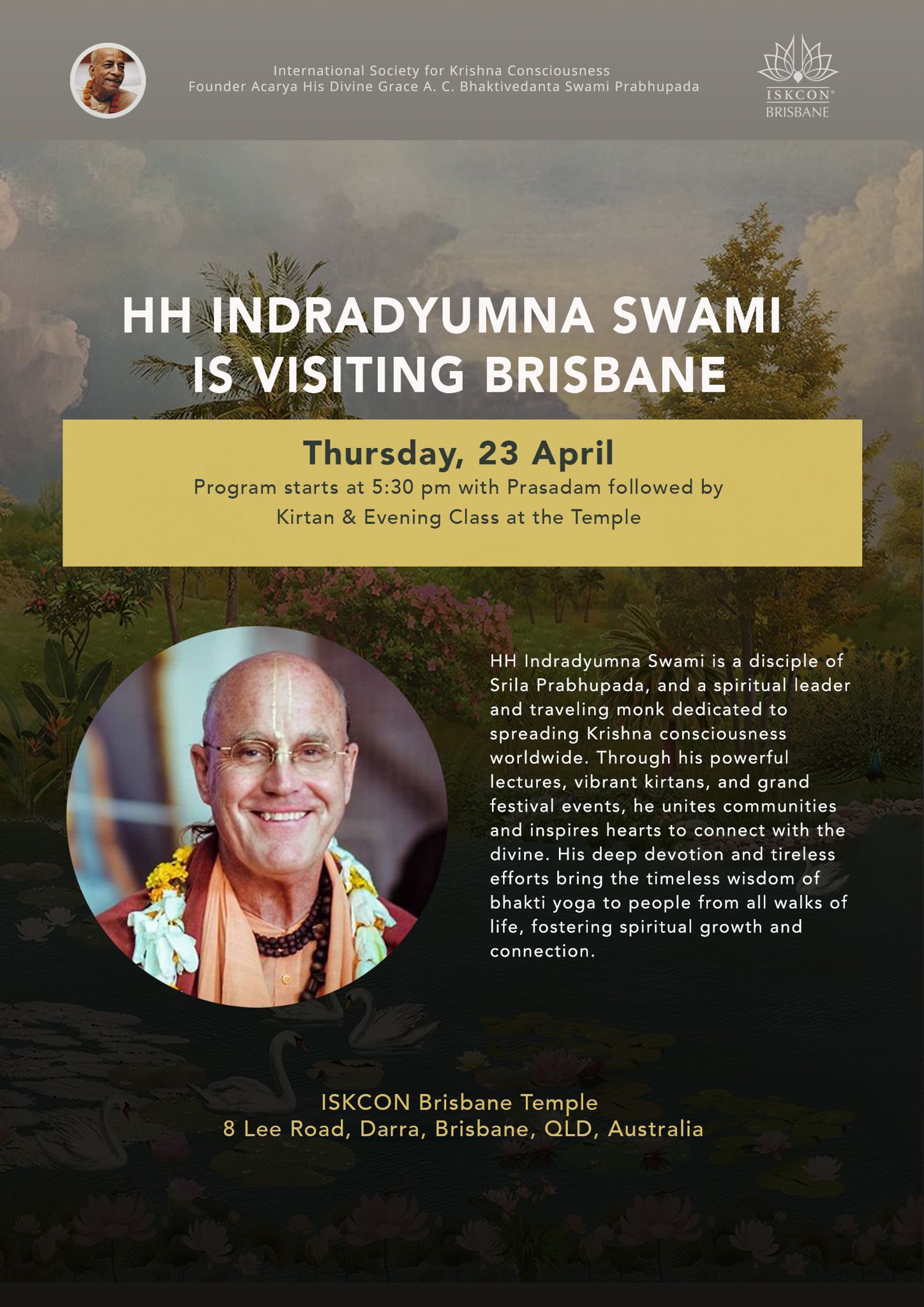 APRIL 12, 2026. Coming from the fabulous Vyasapuja celebration of HH Gopal Krishna Maharaja at ISKCON Brisbane, a truly love of Godhead saturated event, love for the Supreme Personality of Godhead, Shri Krishna Himself, as well as love for His parts and parcels living entities. I was situated in the Darra Aldi car park with a spare garland, colourful shirt, tilak and thinking about the following lines: ” Good day Madam u r looking good to day and if you were to wear this multi-coloured Krishna-blessed garland the quality of your day would increase unimaginably. But she was already driving off in her fancy BMW and I did not get my chance at all. But better was to come.