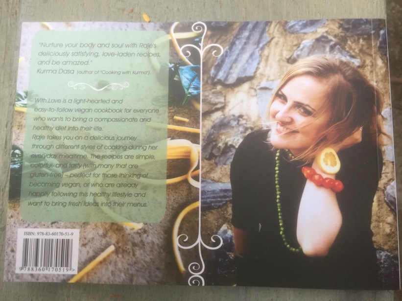 Totally fasting till full-moon rise, as per the scripture’s injunction, I entered the jewelry shop and in the left hand back-corner, behind a counter, there was a lady dressed in immaculate white garments. There certainly were plenty of glittering lights and pieces of jewelry to be seen! I greeted her and offered “With Love” by Her Grace Rajeswari Devi Dasi, (Jolanda Sloderbach), the most successful cookbook I have ever sold for Krishna. Raje’s cookbook “With Love” came at the right historical point of time. All over the world, veganism is in full upswing. Out of the goodness of their hearts, people are very much concerned about animal cruelty and consequently about animal welfare. We may therefore confidently assume that the publication of “With Love” is a representation of Lord Krishna’s special wish and arrangement, a very distinguished credit to the author.