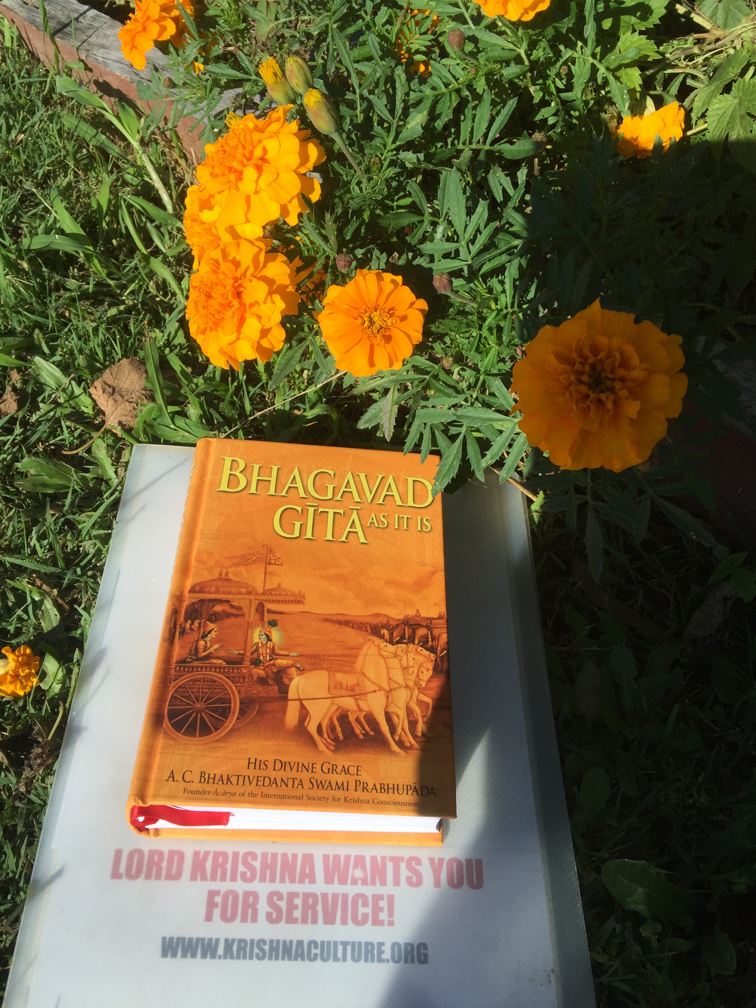 Caitanya Caritamrta enjoins us to induce people to chant the holy names of God, Krishna, in the form of the Hare Krishna mantra. In most cases, therefore, at the conclusion of our meetings, I ask people to kindly chant the Hare Krishna mantra with me. I chant the mantra in eight parts and I ask them to repeat in eight parts. Most of them are very happy to comply with my request and actually feel satisfaction from the chanting and are happy with the experience. Some of course, will decline for various reasons. But we are not the controller of the result of our activities. Neither are we responsible for the result, as long as we act strictly on Krishna’s account. That is an essential message of the Bhagavad-Gita As It Is, In other words, Sri Arjuna was not a killer at all.