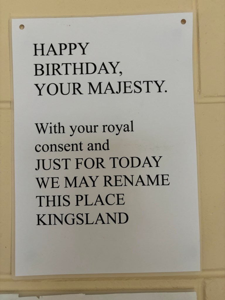 With Your Royal consent and for today only we may rename this place Kingsland in lieu of Queensland. π And this afternoon in Noosa Heads, QLD, 4567, we shall have a special Hari Nam Party procession in Your honour as well, with our very best wishes of health and continued success for Yourself and family.