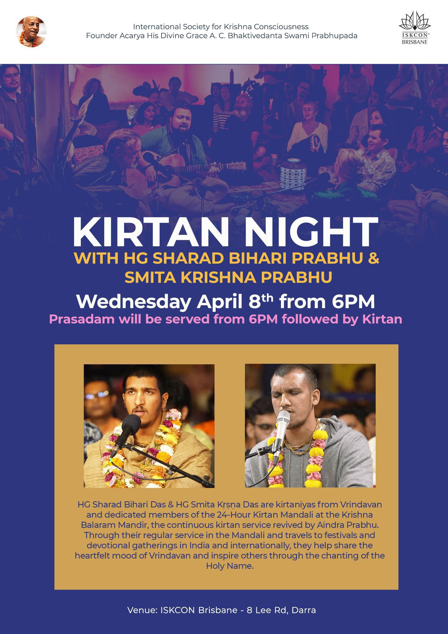 Do attend such a wonderful event and receive the Lord’s mercy with of full spiritual benefits, Kirtan, Aarti and Spiritual Discourse.